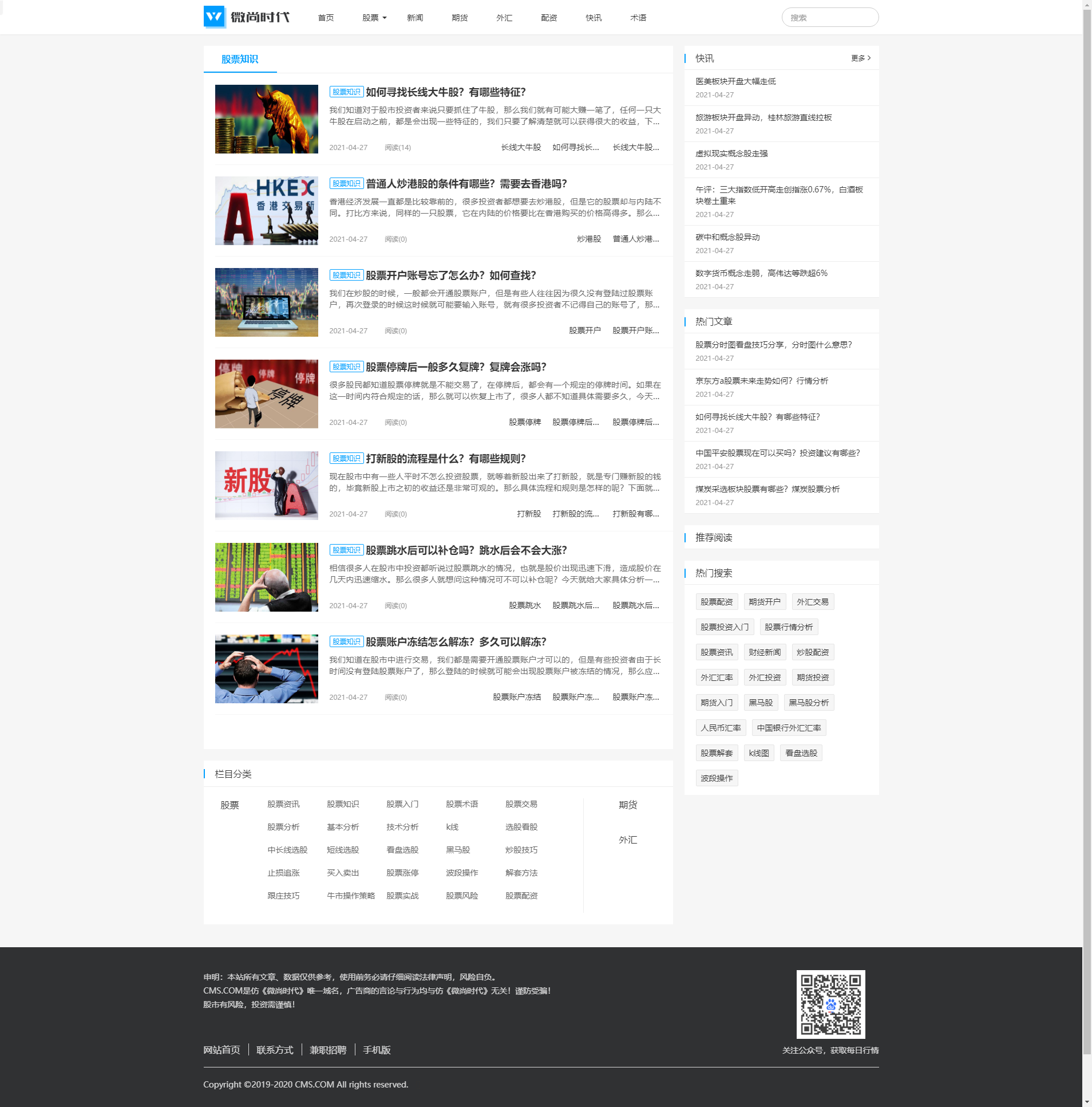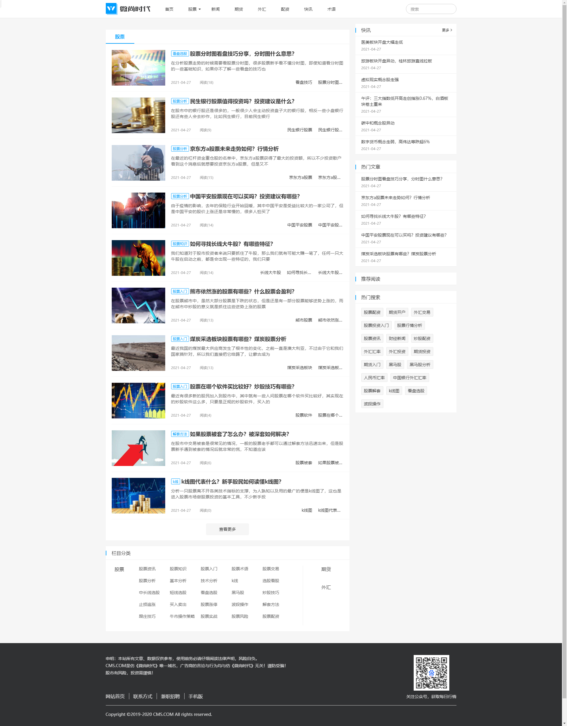 仿《微尚时代》财经股票学习新闻资讯网站模板源码 - 演示截图