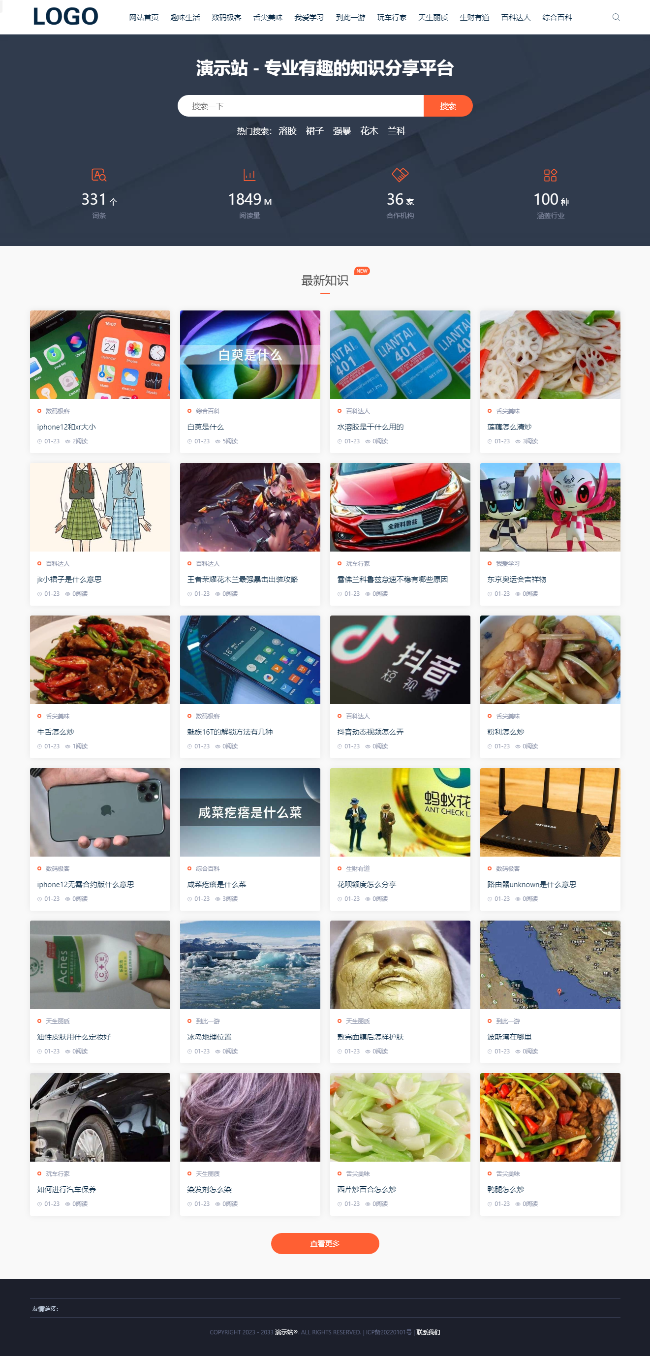 仿《业百科》百科问答知识资讯网站模板源码 - 演示截图